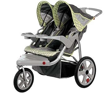 - Gray and Green Swivel Wheel Double Jogging StrollerRubberized handle grip is comfortable and slip resistantLength 49"Height 40"Width 32.25"Assembly Required Light AssemblyInner Dimensions 49 x 32.25 x 40Other Dimensions 33.5 x 32.25 x 20.5 foldedColor Gray and Green