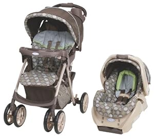 Stroller, the top rated Graco SnugRide Infant Car Seat, and a stay-in-car base. The stroller features a one-hand, self-standing fold, easy access drop-down basket, parent's storage tray with two deep cup holders designed especially for you. And for your little one, it offers a multi-position reclining seat and a child's tray with cup,snack holder that pivots open for easy stroller entry. Stroller Features: Includes the top rated Graco SnugRide? Infant Car Seat Stroller holds child up to 50 lbs. for years of comfortable strolling One-hand, self-standing fold closes easily, no bending necessary Padded, multi-position reclining seat keeps baby comfy Lockable front swivel wheels with suspension for superior maneuverability Extra-large, drop-down storage basket lets you reach in without disturbing your reclined child Parent?s tray with storage and 2 cup deep holders for on-the-go convenience Child's tray with cup holder pivots for no-fuss stroller entry Convertible 3 or 5-point harness grows with your child Car Seat Features: Top rated by leading consumer magazines and publications Rigorously crash test to meet or exceed U.S. safety standards EPS, energy absorbing foam liner 5-point harness helps keep baby secure Removable infant head support cradles child's head and neck Specifications: Stroller weight: 18.5 lbs Car Seat weight without base: 7.5 lbs Car Seat weight with base: 12.7 lbs Stroller Height: 40" Stroller Width of Handle: 15.75" Stroller Length (wheels front to back): 27" Stroller Length (wheels left to right): 19.5" Car Seat Dimensions: 24.2H x 17.5W x 26.7D" Style.